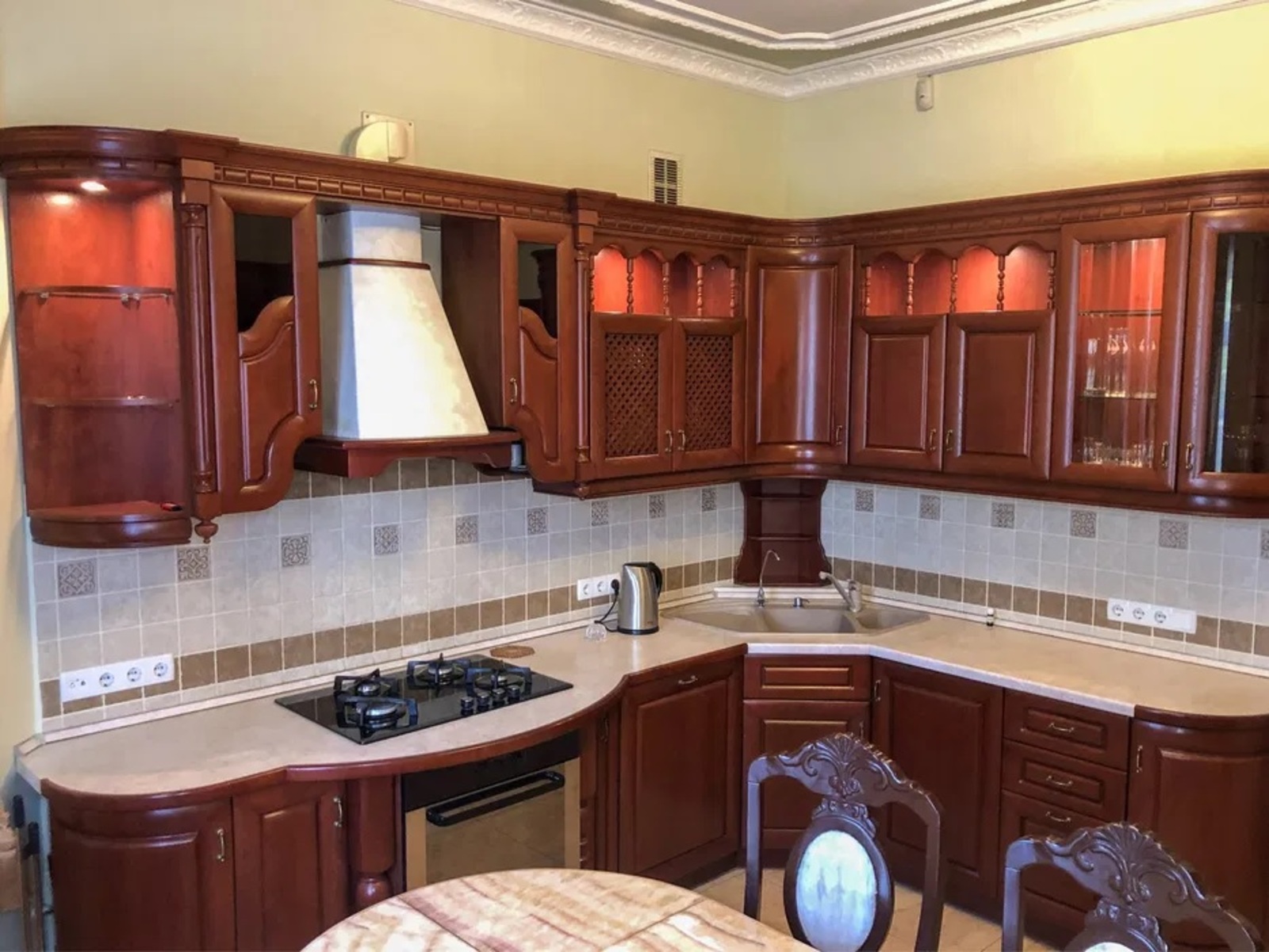 Площа будинку 450 кв. Залишаються якісні меблі, виготовлені з натуральних матеріалів та вмонтована побутова техніка.