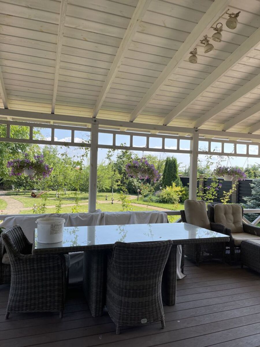 Добротный дом, центральные коммуникации (электричество, газ), скважина, видеонаблюдение, сигнализация, респектабельные соседи, асфальтированная дорога к дому, площадь дома 273 кв м.