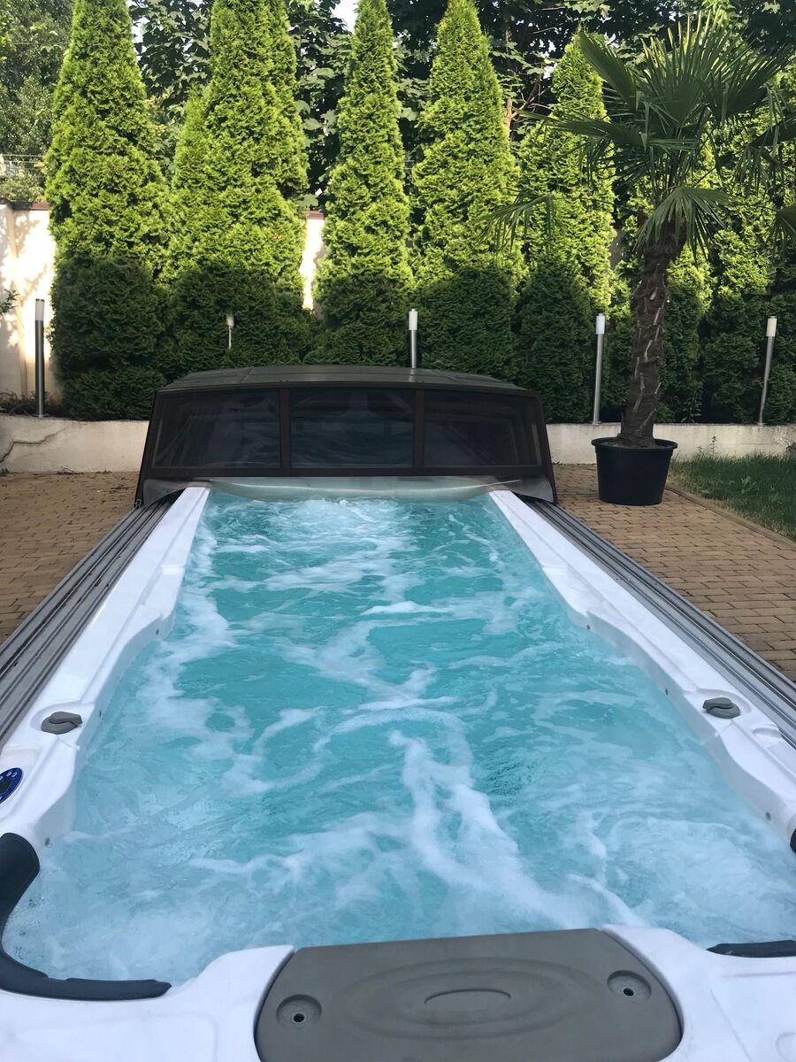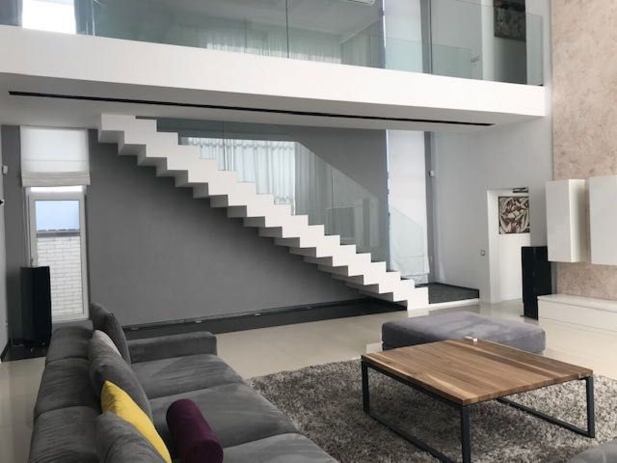Дом построен в современном стиле минимализм по технологии термодом с плоской крышей и огромным остеклением, второй свет (фасадный алюминий с каленым, тонированым стеклом), во дворе открытый SPA-бассейн 6 х 2, 7 х 1, 35 м. c возможностью купаться зимой (вода нагревается до 46 градусов ).