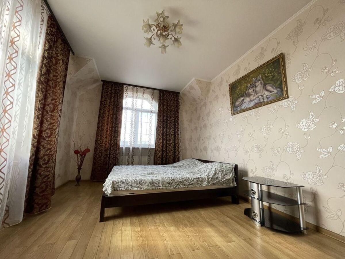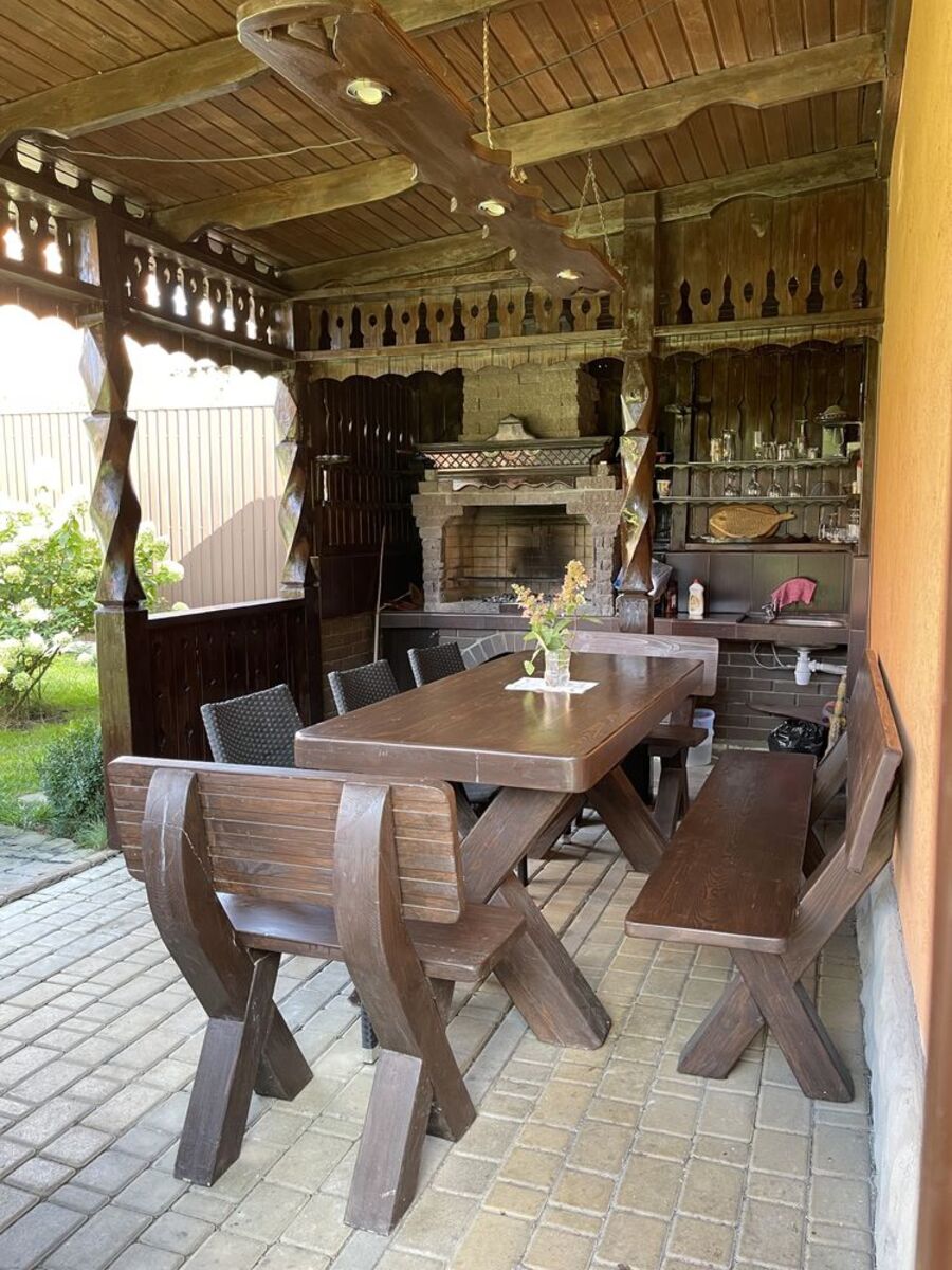 Будинок знаходиться у Києві, не область. 15-20 хвилин на машині до Хрещатику. Гарна транспортна розв‘язка. 100-150 метрів від будинку знаходиться продуктовий та овочевий магазини. 300 метрів від будинку парк з футбольним полем та дитячим майданчиком. 800 від будинку школа, 1 км від будинку 2 дитячих садочка. В радіусі 2-3 км від будинку декілька супермаркетів, аптек, приватних лікарень, шкіл, садочків, заправки для авто, сто, мийки, тц Республіка, Метро та Епіцентр, спортзали, іпподром, вет лікарні, зоосалони та станції метро. Доставка «глово» приїде! t t На території будинку своя скважина та септик. На другому поверсі великий балкон з чудовим видом на ділянку, з кухні вихід на терасу. На території знаходиться баня з басейном у середині, та басейн з фонтаном на вулиці. Біля бані велика альтанка (беседка), яка вміщає до 15 чоловік з видом на фонтан з басейном. Доглянута територія - газон, кущики, декілька фруктових дерев та кущі лохини. На першому поверсі роздільний санвузол, величезна вітальня з каміном, та кухня студія. На другому поверсі 3 кімнати, гардеробна та сумісний санвузол. Також є підвал, у якому гараж на 3 авто (частину якого використовуємо під пральню) комора, та кімната понад 30кв, яку можна використовувати під спортзал або більярдну, а під час війни як бомбосховище. Також є вольєр для песика з великою будкою з підігрівом. Великий передній двір, який вміщає аж 6 машин, якщо приїжджают друзі) Тиха вулиця, яка закрита шлагбаумом, гарні та привітні сусіди. Запрошуємо вас на перегляд, | ||||||||||||||||