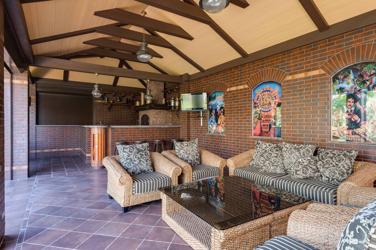 Пропонується Вашій увазі чудова затишна садиба в с. Стоянка. Комплекс складається з трьох основних приміщень та декількох допоміжних. Площа земельної ділянки - 28 соток. Господарський будинок має чотири поверхи, де другий та третій - житлові, перший - допоміжний (технічний) , четвертий - ігровий. На житлових поверхах розміщено 11 кімнат. Передпокій, гостьова, кухня-їдальня, кабінет, спальня, дитяча, ігрова, гардеробна, 3 санвузли. На першому поверсі розміщені: гараж, гардеробна, кладова, пральня, винотека, сауна, кімната відпочинку та сунвузол. Четвертий поверх - дизайнерське горище у вигляді яхти, обладнане всім необхідним для гарного комфортного відпочинку. Гостьовий будинок має три поверхи. Перший поверх - технічний, та два житлових. 9 кімнат, а саме: вітальня, кухня-їдальня, спальня, спальня-кабінет, ігрова кімната, 2 гардеробні, 2 санвузли. Додатково є кладові, технічні приміщення, та приміщення для персоналу. В будинках виконаний дорогий високоякісний ремонт. В будівництві використовувались тільки найкращі, здебільшого натуральні та екологічно чисті матеріали та найякісніше обладнання! Окремої уваги заслуговує будинок для відпочинку. Тут розташовані: 'кімната паб', більярдна з каміном та повнорозмірним столом, зробленим на замовлення, фінська баня, джакузі, та критий басейн з підігрівом, водоспадом та течією. На території розміщено 4 гаражі, міні квартира для персоналу, та технічні приміщення, як склади та майстерні. Подвіря з професійно виконаним ландшафтним дизайном, оздоблене різними видами дерев та кущів, розарієм, барбекю, зеленою альтанкою, зоною відпочинку, спортивним майданчиком та тенісним кортом. Дуже зручне розташування! Котеджне містечко закритого типу за 7 км. від Кільцевої дороги, та 18 км. до Головпоштамта (Майдан Незалежності). Поряд ліс, річка та галявина, для активного відпочинку на природі. Поблизу розташовані магазини: 'WINETIME', 'Сільпо', 'АТБ', 'Фора', декілька ресторанів, магазин будматеріалів, хімчистка, автотовари, ринок, товари для домашніх тварин, саду та городу, автомийки, заправки, тобто практично все, що потрібно для життя, не виїжджаючи в місто. Дана садиба не залишить нікого байдужим! За більш детальною інформацією телефонуйте. |