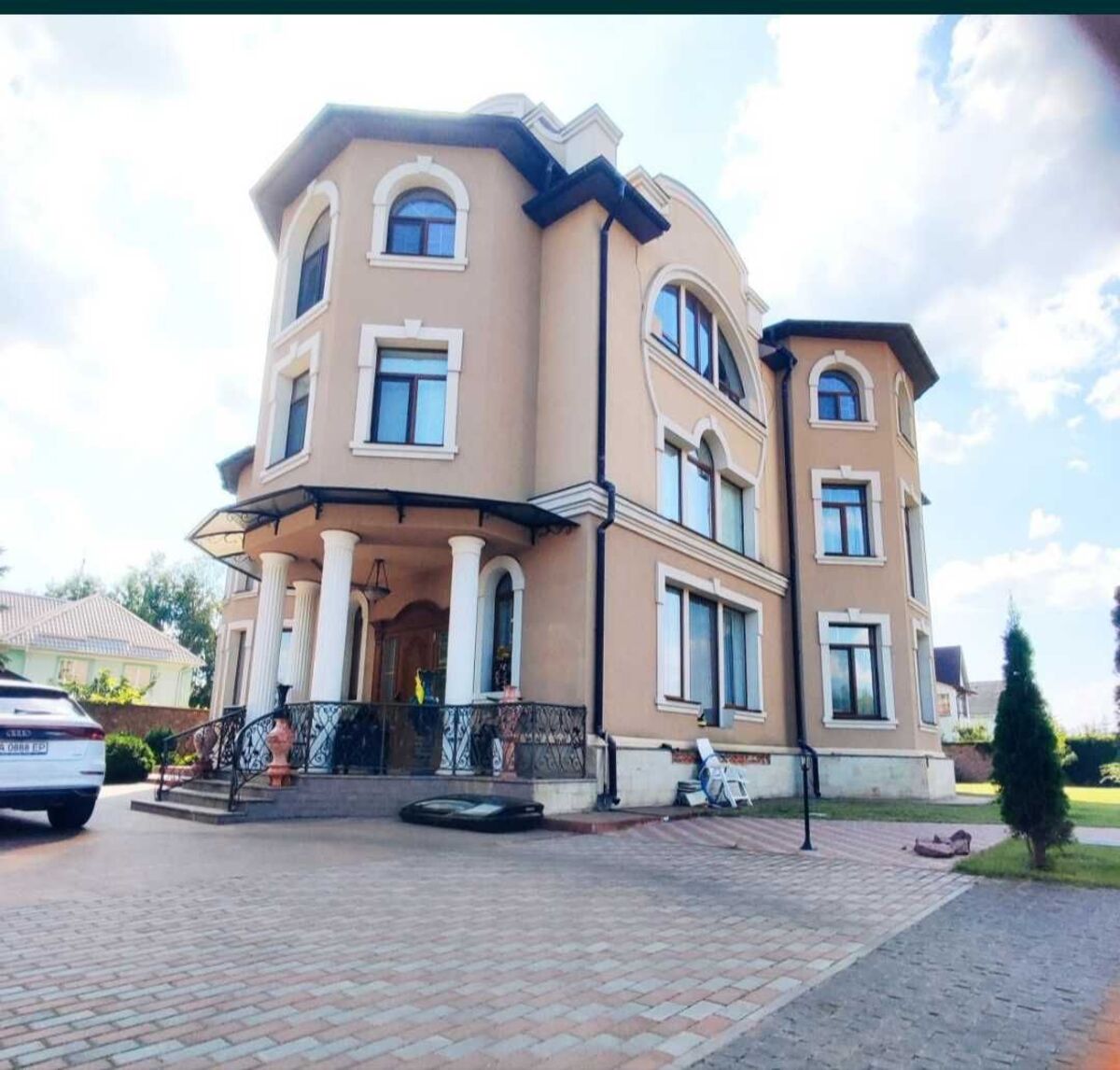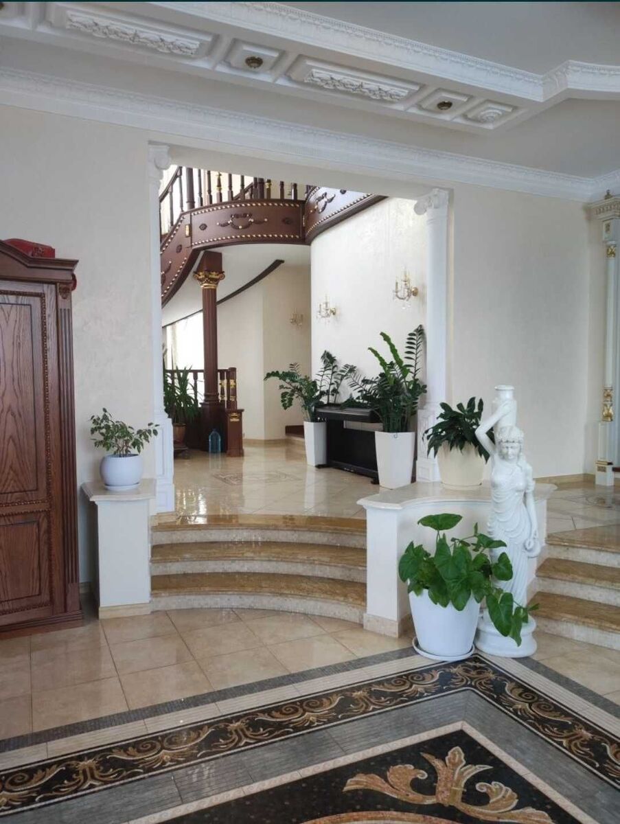 У звязку з переїздом терміново продається будинок з усією з усією обстановкою нище собівартості! с. Щасливе межує з Києвом, знаходиться по Бориспільській трасі. Будинок 3-х поверховий 1050 кв.м. + цокольний поверх. На ділянці 38 соток розташовані: гостинний будинок на 100 кв.м., басейн, сауна, будинок охорони.. В будинку 9 спалень, 7 сан.вузлів, 2 вітальні, 2 великі гардеробні кімнати, велика пральна, також є кімнати вільного використання. В будинку залишаються елітні: меблі, люстри, картини, статуї та інші витвори мистецтва, побутова техніка. Є свердловина 100 м., підведено 80 кВт. електрики, газове та електричне опалення, також є генератор 80 кВт. Будинок чудово підходить для особистого житла, а також під орендний або готельний бізнес VIP-рівня. |