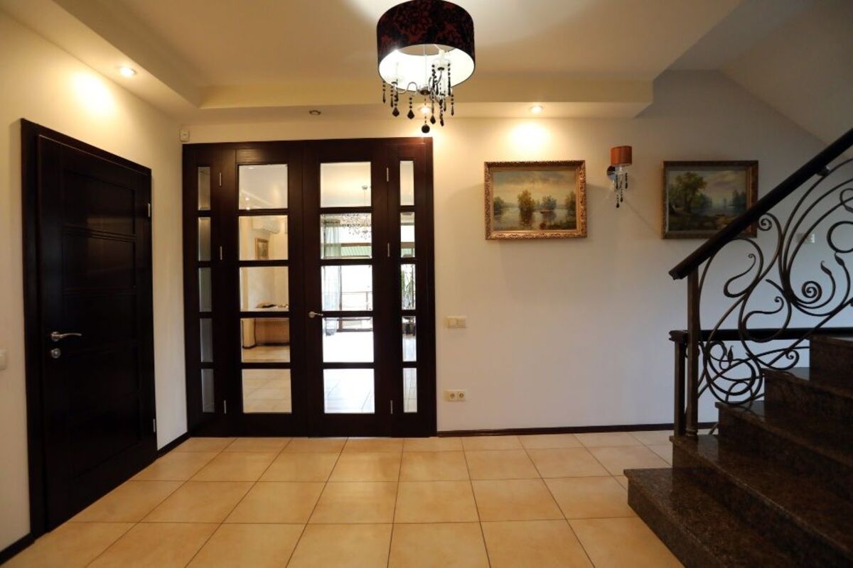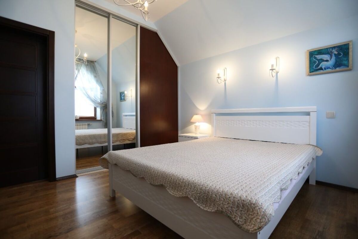 Продається будинок. Охраняемый котеджний городок знаходиться на березі річки Конек на территории Киева. Район ТРЦ Атмосфера. По направлению на Жуків острів. Дом збудован в 2012 году.Площа дома 400 м2, жила - 146 м2. Фундамент з монолитної плити, ленточный(бетонні блоки). Стіни из червоного кирпича (в 2 кирпича-50 см); утепленя-пенопласт 5 см, минеральная штукатурка. Перекриття-жб плиты, лестницы-монолитні жб. Крыша-металлочерепиця. Повністтю меблирован брендовой мебелью и укомплектован бытовой техникой. В цокольном этаже - хозяйственные помещения и спа-зона с сауной. На 1-поверсі - велика вітальня з каміном і виходом на терасу. Спальня. На 2-поверсі - 3 спальні з ванними і бібліотекою в холі. На мансарді ігрова зона для детей.Всего в будинку чотири спальні, кабінет, 2 ванні, 2 туалети і гараж. Проект будинку «Фаворит» архітектора Григорєва І. М. Водопостачання від 2-х свердловин КГ «Коник» глибиною 160 і 220 м, система водоочистки і центральна каналізація. Опалення-тепловий насос фірми 'Octopus' і дуже економний газовий котел Buderus. Економія при опаленні колосальна. Ділянка землі 10 соток з ландшафтного дизайном, декоративними рослинами і плодовими деревами. Обладнаний системою автополиву. Потужність трьохфазову ел.тока-25 кВт. Центральний газ. Котеджне містечко «Коник» має унікальну локацію - 5-7 хвилин до ст. Метро Видубичі і Іподром, 15 хвилин до центру міста, навпаки розташовані ТЦ «Атмосфера» та ТРЦ «Арт Молл». Городок має чудовий дитячий майданчик, набережну і пляж на річці Коник, спортивний комплекс під відкритим небом. На іншому березі річки розташований заказник «Жуків острів». У містечку працює цілодобова охорона з відеоспостереженням і фізичним патрулюванням. Будинок продається вперше. |