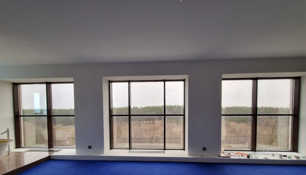 Hi-tech будинок 420м2 з видами на ліс у Гатному, 5км від Києва (м. Теремки). Під чистовий ремонт, зі всіма комунікаціями. Каркасно-монолітний, 3 поверховий, унікальні та сміливі архітектурні рішення, висота поверхів 3м. та 4м. у вітальні, панорамне скління. - СПА-зона з басейном у будинку - Open-space 140м2 вітальня з каміном та виходом на видову терасу 80м2 - Спальня та ванна кімната з панорамним видом на ліс - 10 соток землі, огороджені 4м забором, повна конфіденціальність - Будинок для гостей 60м2 - Крита альтанка зі справжньою піччю та мангалом - Відкрита альтанка з виноградом - Готовий фруктовий сад - Озеро, пляж, риболовля в пішій доступності |