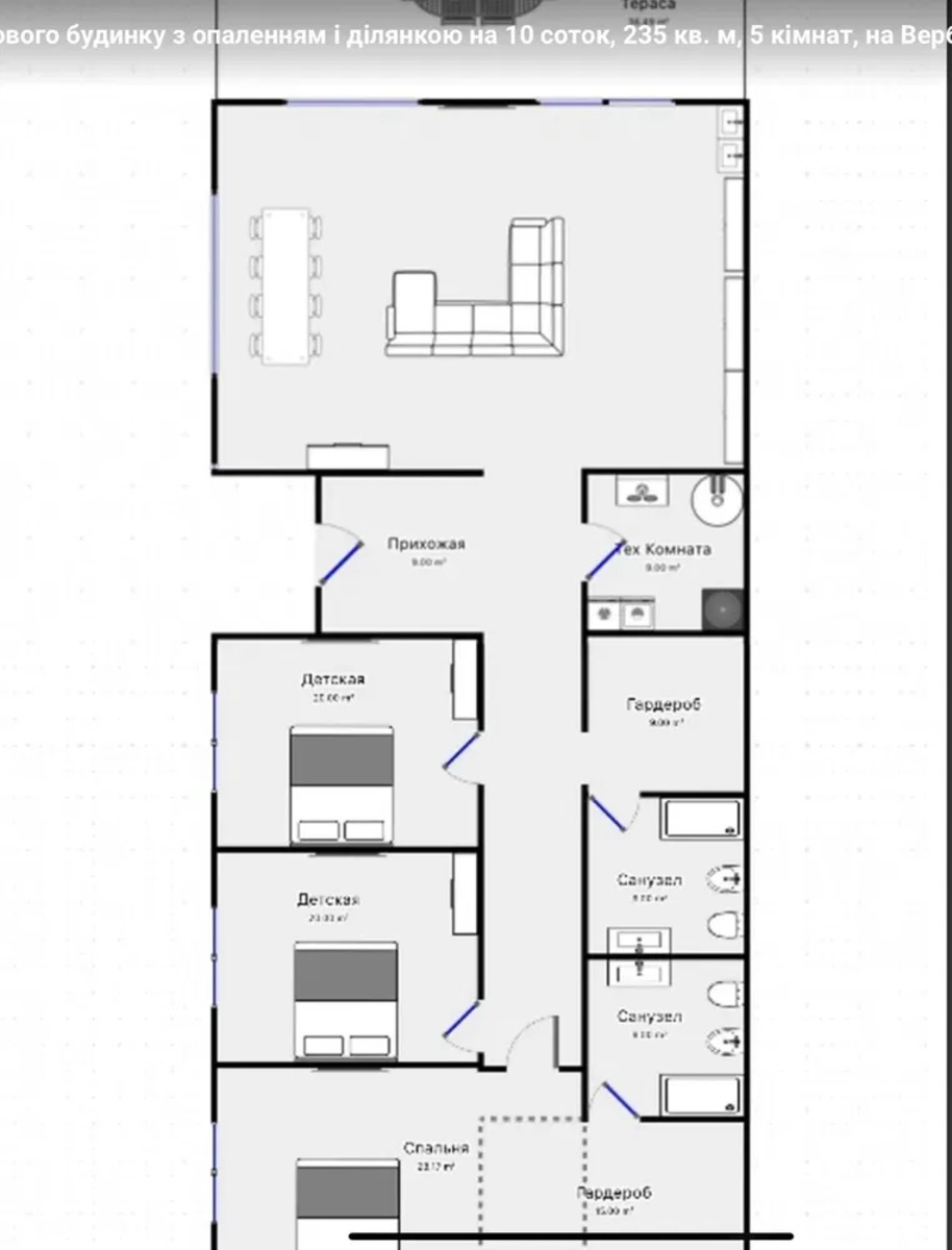 Продам дом Осокорки 235 м2 с выходом на воду 6 км от метро Славутич, район стадиона «Левый Берег» Одноэтажный Дом 200 м2 с выходом на воду, стены Газоблок 500мм + утеплитель 50мм + акриловая штукатурка. Алюминиевые окна и двери ALUMIL, плоская крыша 300мм вата Beltep + ПВХ-мембрана Protan. Высота потолков 3 метра жилая зона, 4 метра гостиная. Сделана электрика, сантехника, отопление(водяной тёплый пол), магистрали кондиционеров. 3 спальни(по 20м2), 2 санузла(по 9м2), котельная(9м2), 3 гардеробные(по 9м2), гостиная (60м2), прихожая-коридор(25м2). Гостевой домик 35м2 - комната, санузел, кладовая. Скважина 65 метров, 2 переливных септика по 3 кольца 2,5х1.. |