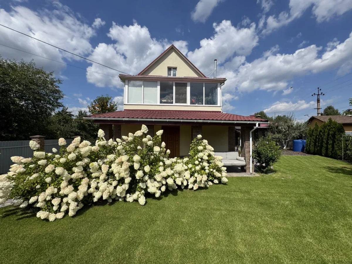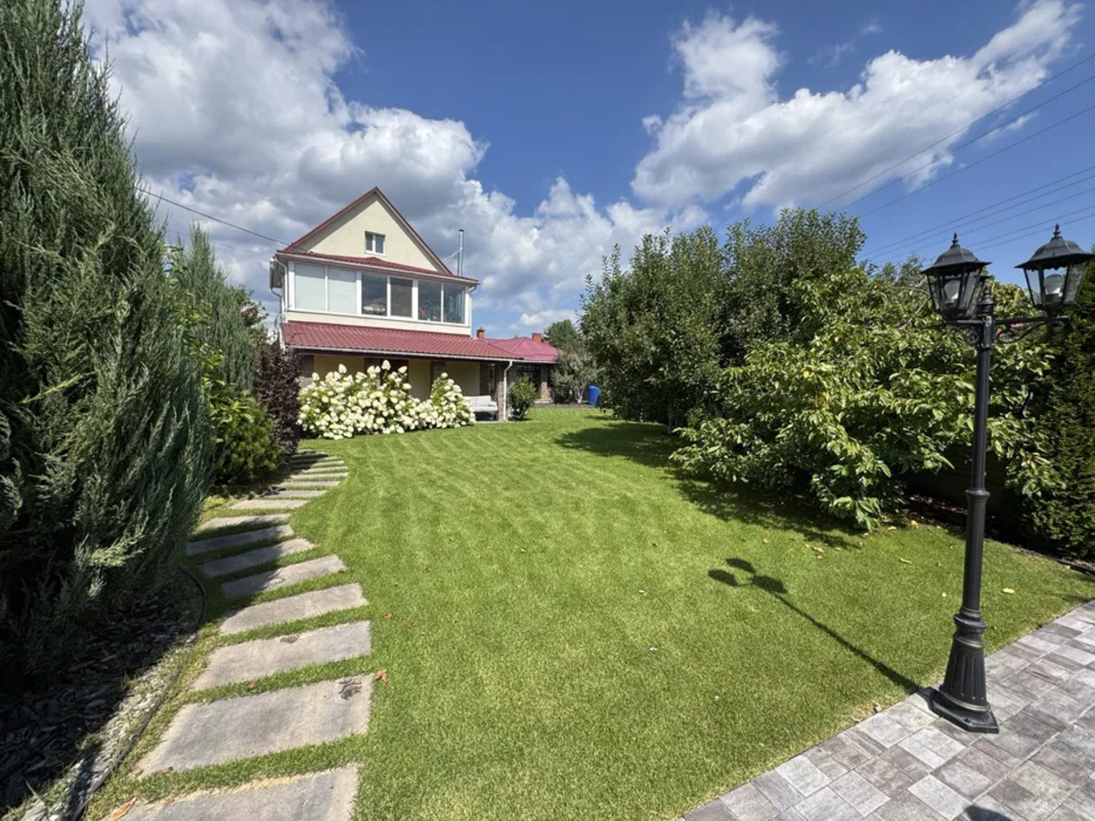 Продається якісний та безпечний двоповерховий будинок + 3 поверх у закритому садовому товаристві у с. Романків Київська область (Новообухівська траса), 15 кілометрів до Київа, розташований у мальовничому місці біля Блакитного озера (рибалка, власний пляж). Сучасний автономний, двоповерховий будинок, загальною площею 260 м2; житлова 155 м2 будинок; гостьовий будинок 105 м2 лазня, зона BBQ, простора літня кухня; висота стелі 2.9 метра;