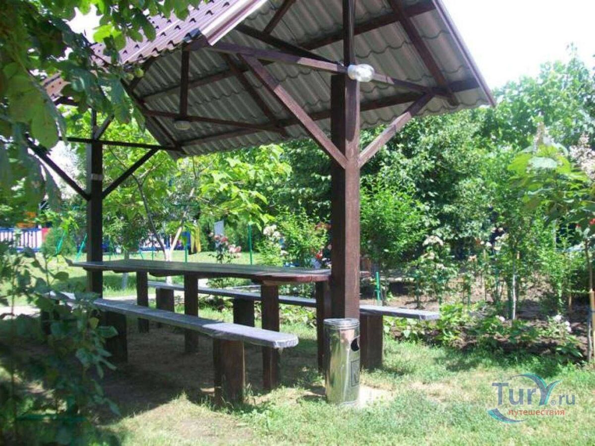 Два 3-х этажных здания на 66 номеров с удобствами (душевые, с/у, бойлер). Одноэтажные домики без удобств– 45 номеров. Домик администрации, туалет на улице с душ кабинами. Большая столовая, 5 помещений для проживания персонала. Номер с тремя спальнями и большой гостиной для проживания собственника.