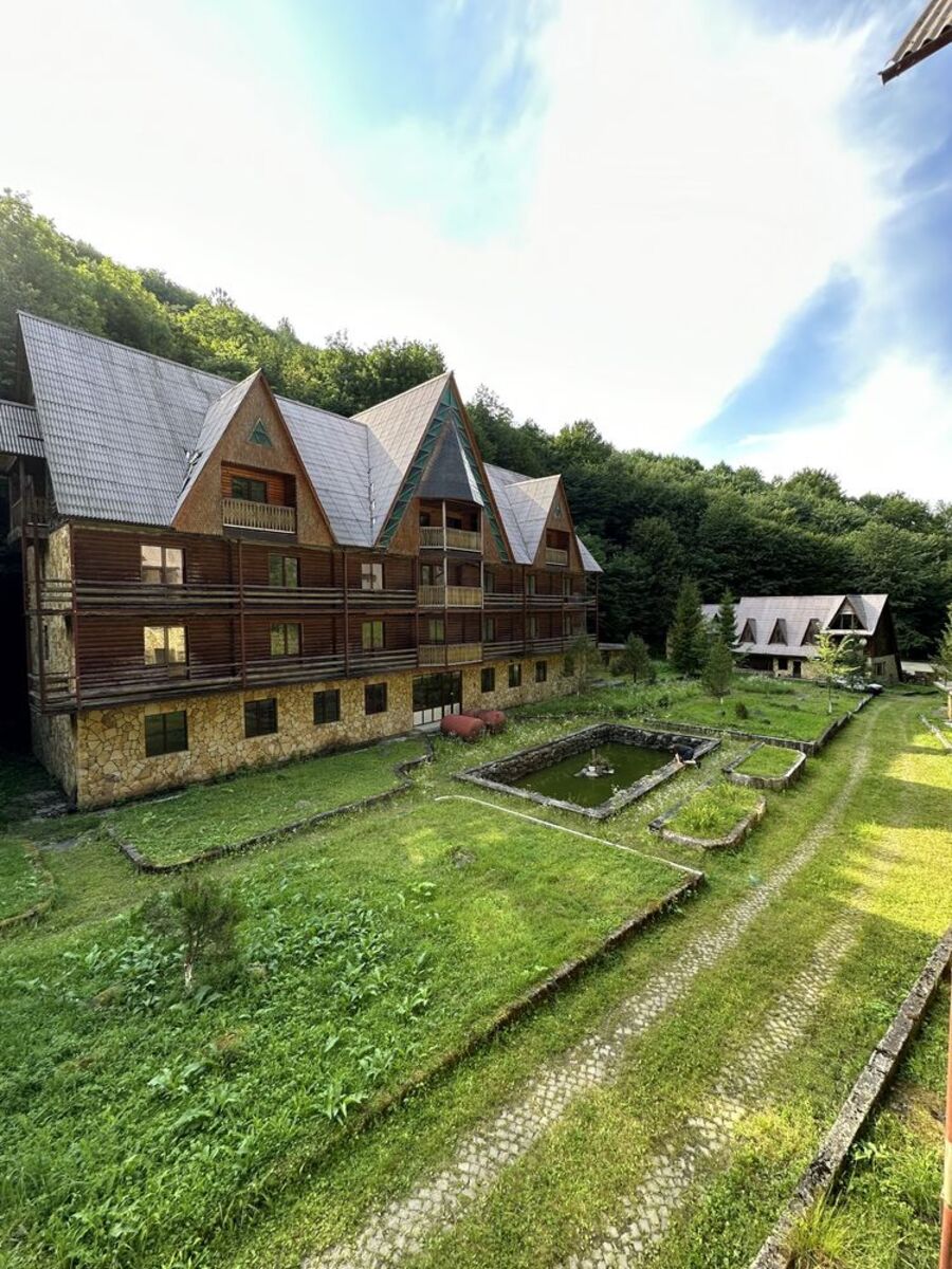 Продається санаторій-профілакторій «Квасний Потік», що знаходиться 4 км від с.Стройне (через село проходить траса Свалява-Хуст, автобус ходить щогодини) і в 8 км від міста Свалява, через яке проходить міжнародна автотраса «Київ-Чоп» і є залізничний вокзал. Санаторій розрахований на обслуговування 100 відпочиваючих (55 номерів) На території знаходиться: 1. Їдальня, біліардна, кімнати площею 881,9 кВ.м. 2. Спальний корпус площею 985,3 кВ.м. 3. Спальний корпус площею 324,7 кВ.м. 4. Сауна, баня площею 76,3 кВ.м. 5. Котельна площею 83,7 кВ.м. 6. Два бювета площею 7,3 кВ.м., та 23,3 кВ.м. 7. Каплиця площею 47.7 кВ.м. 8. Гаражі 9. Сторожовий будинок та Рецепшон. Санаторний комплекс складається з трьох спальних корпусів приблизно на 55 номерів, приміщення столової та актового залу, гаражів, альтанок, бювету мінеральної води, в одному з корпусів на першому поверсі заплановано розміщення лікувальних кабінетів. Загальна площа об’єкта 2618 кВ.м. Об’єкт розташований на земельній ділянці площею 1.1742 га, яка знаходиться в приватній власності( є держ.акт на землю). Санаторій має власний водозабір, власну лінію електропередач довжиною 4 км з трансформаторною підстанцією на 250 кВт. Всі комунікації діючі. Опалення комбіноване, вдень тверде паливо( дрова), вночі-електричне. Основні фізико-хімічні властивості води досліджені Одеським НДІ курортології. Мінеральні води з родовищ 1 і 2 відносяться до вуглекислих гідрокарбонатно-натрієво-магнієвих вод з рівнем мінералізації 1,2 гл, є аналогами мінеральної води «Нарзан», що дає можливість використовувати їх: - У вигляді вуглекислих ванн для лікування хронічних радикулітів, ревматичних і ревматоїдних полівртритів; - для питного вживання при лікуванні хронічних захворювань шлунково-кишкового тракту, печінки, жовчного міхура ( хронічних гастрит з підвищеною і зниженою кислотно утворюючою функцією, виразкової хвороби шлунка і дванадцятипалої кишки, хронічних гепатитах, хронічних холециститах, хронічних панкреатитах); -Для інгаляцій інфекційно-алергічних захворювань верхніх дихальних шляхів( хронічний риніт, хронічний фарингіт, хронічний ларингіт). Комплекс має ліцензію на використання мінеральної води для лікування та розливу дійсний до 2025 року, вода дуже корисна. Дебет води становить близько 24 куб.мдобу- з родовища 1 і близько 12 куб.мдобу - з родовища 2.. |