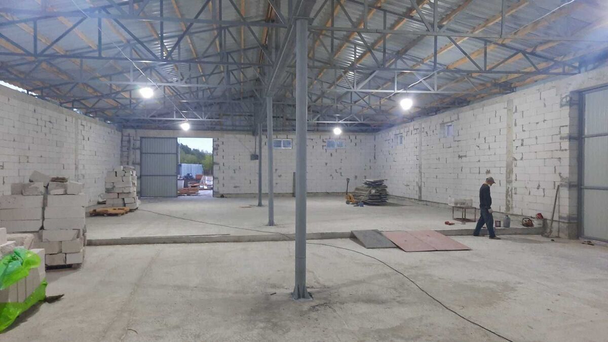 •1-ше приміщення включає капітальну будівлю площею 400 м2, 2 навіси по 200м2, тепле приміщення, що дозволяє використовувати його під офіс та інших комерційних цілей, туалет, кухня, кімната охорони, 2 кімнати для відпочинку, висота стелі 4 м;