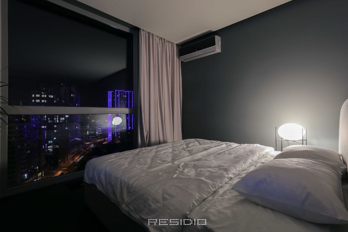 Панорамні вікна відкривають чудовий вид на місто. Апартамент має все необхідне для проживання.