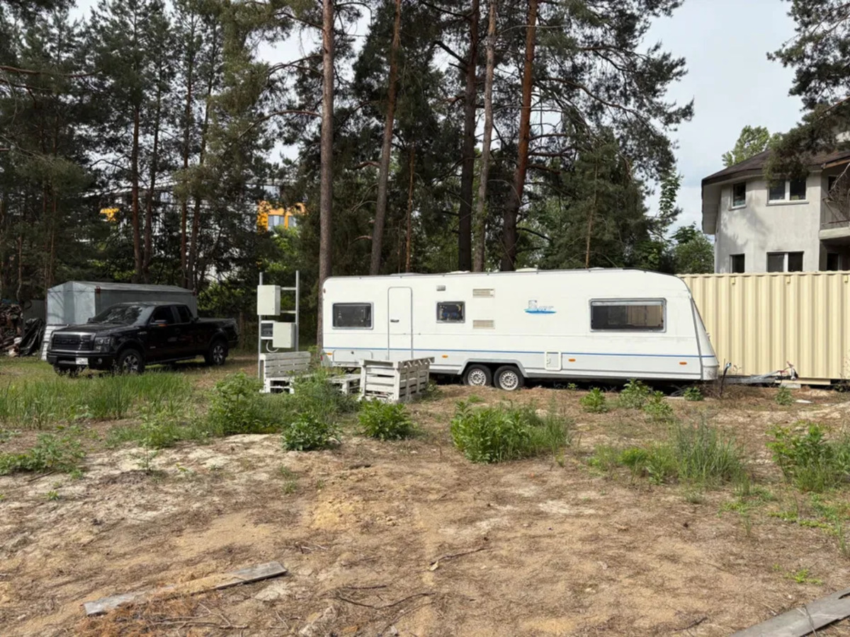 •tЄ окрема битовка для проживання робітників. Контейнер – абсолютно новий контейнер використовується в якості сараю для інсрументів, матеріалів для будівництва. Комунікації: •tЗаведена електрика 30 кВт, зроблений електричний щит